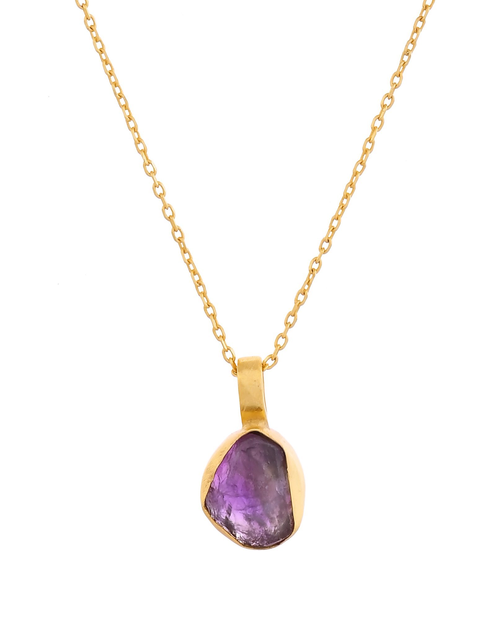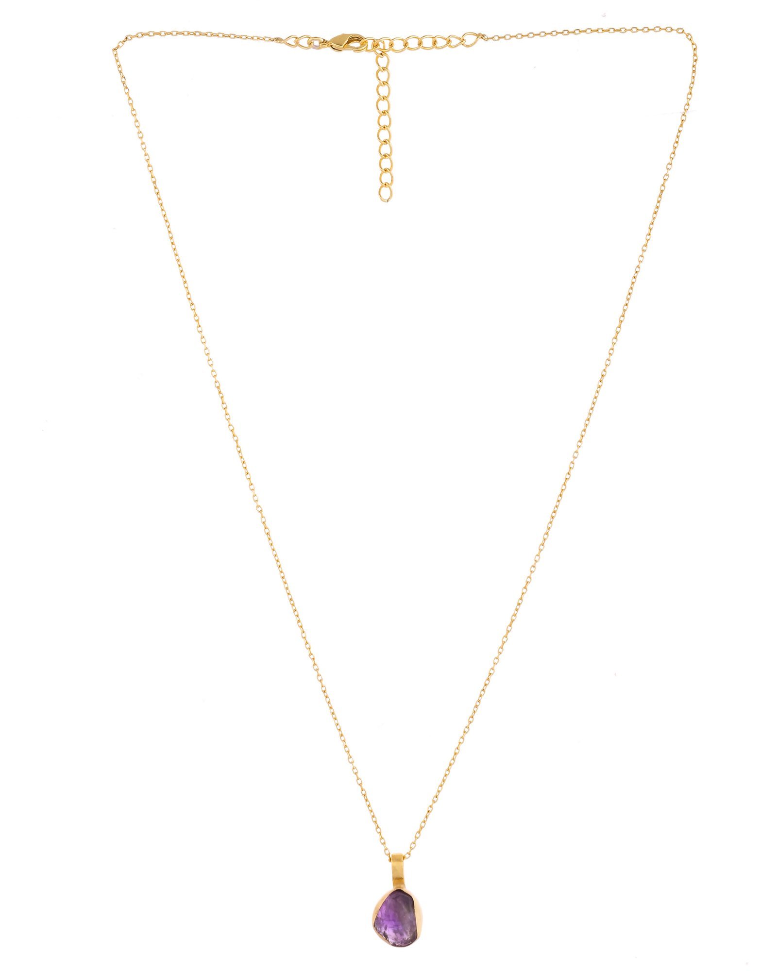 • Material & colour: Gold-toned necklace featuring a small deep purple amethyst pendant set in a smooth bezel frame